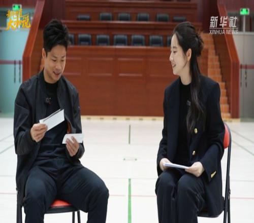 11月20日,苏炳添在第十五届全国运动会田径男子4X100米接力决赛后发言。新华社记者 黄伟 摄